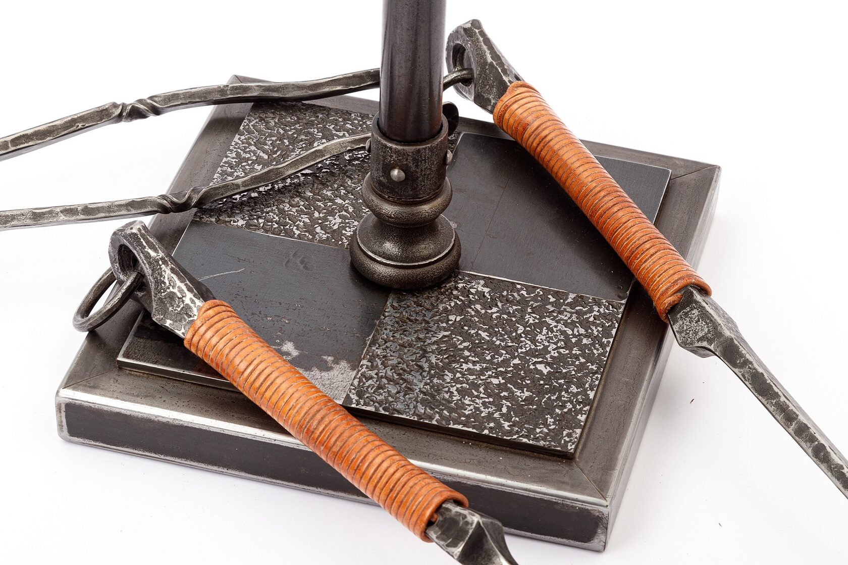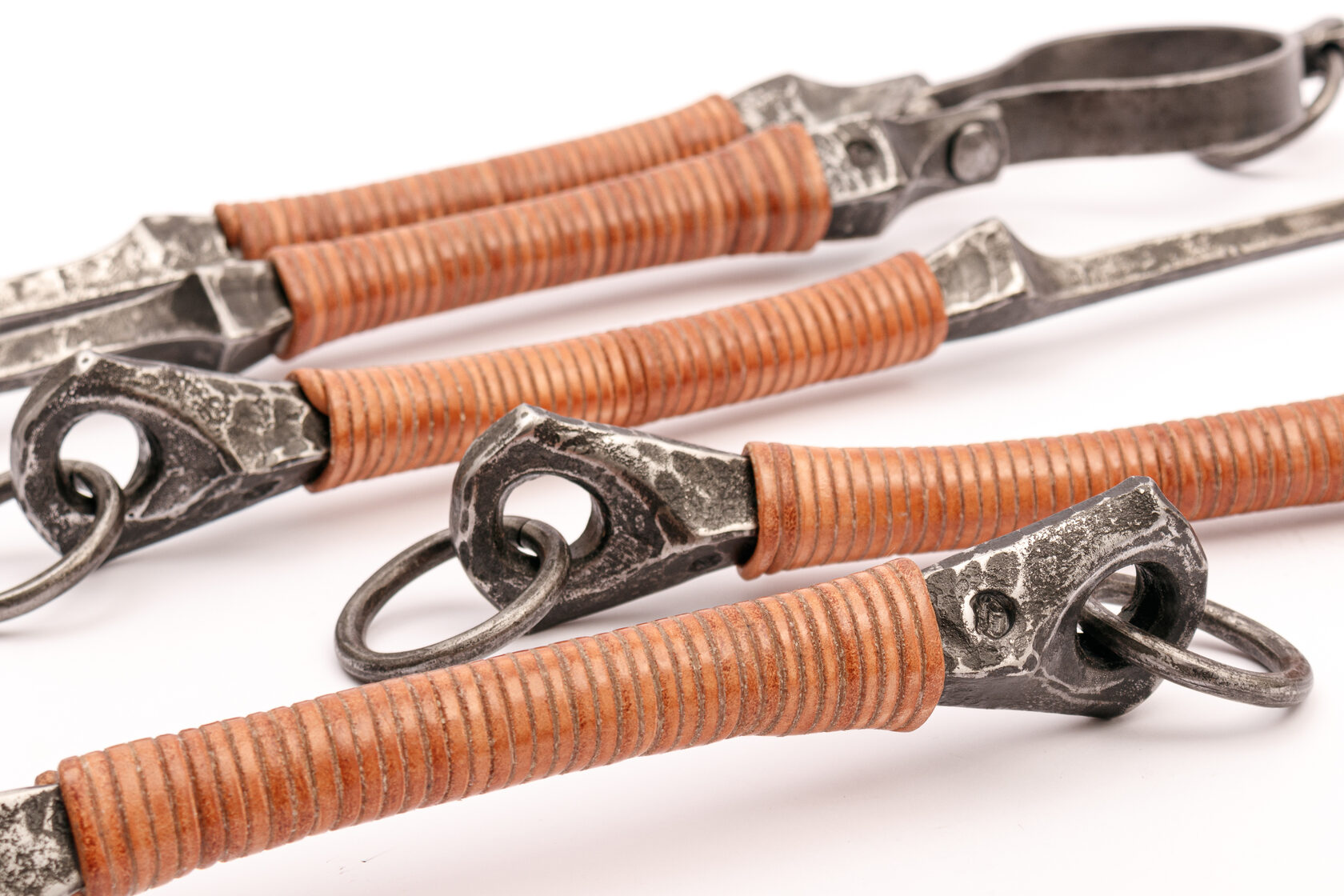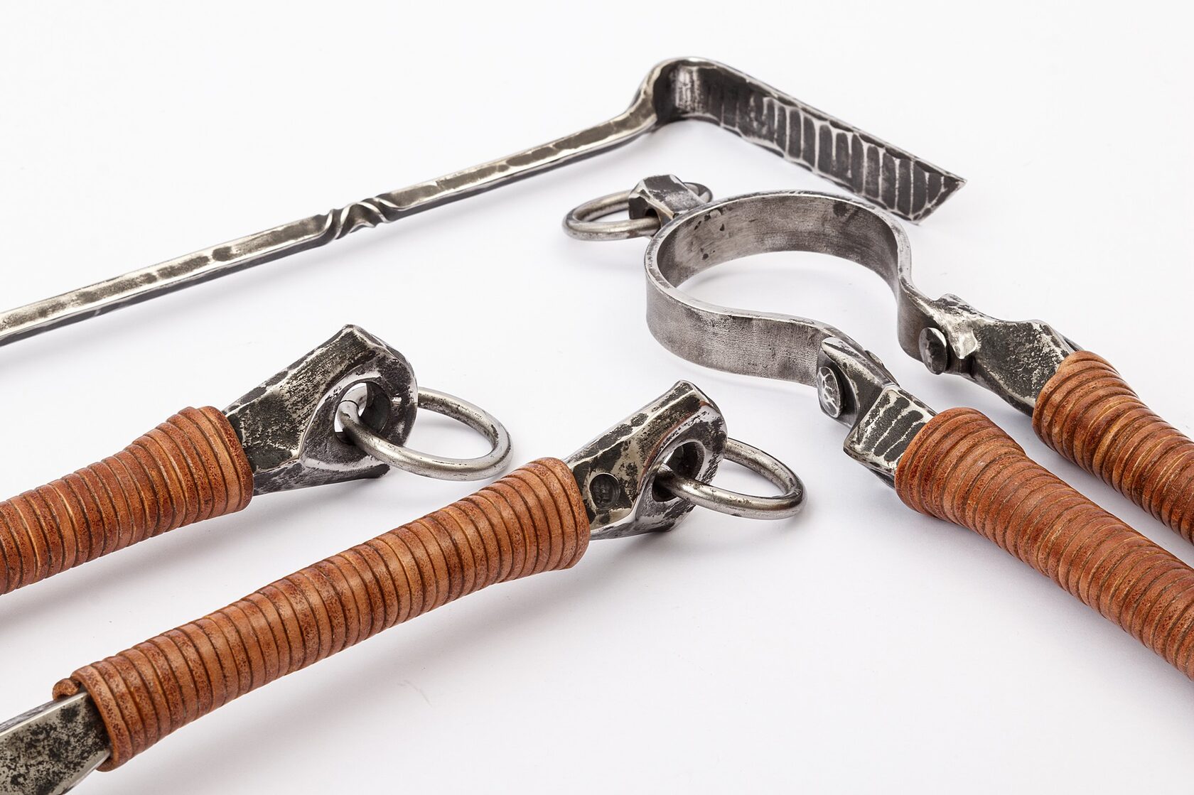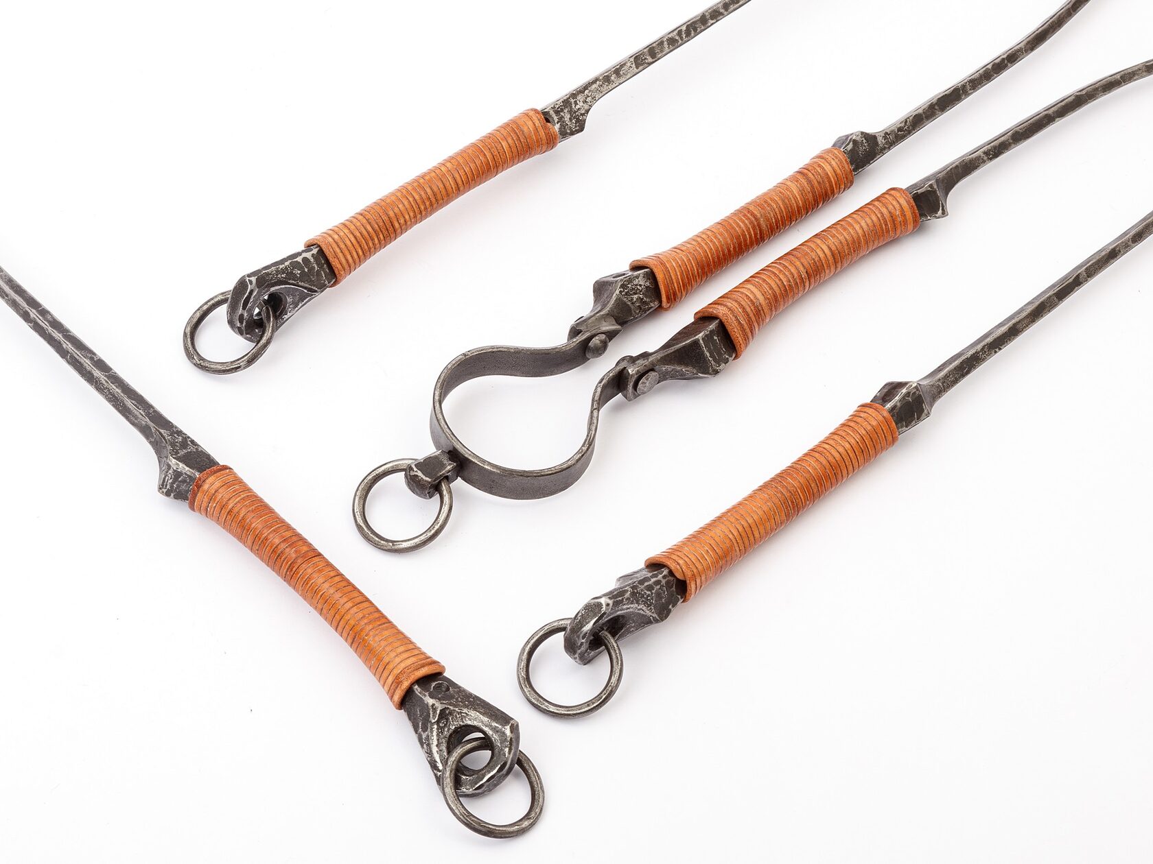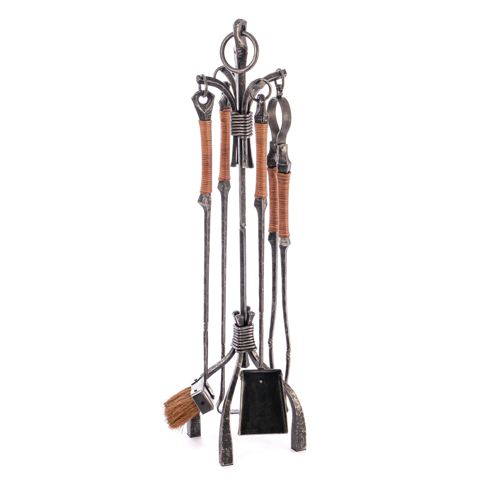 Ручки кочерги, щеток и других аксессуаров отделаны натуральной кожей. Материал отполирован, обработан специальными растворами от истирания и потемнения. Металлические части выкованы вручную из качественного металла, устойчивого к высоким температурам, коррозии. Кованый набор для печи, камина станет оригинальным подарком, украшением загородного дома.