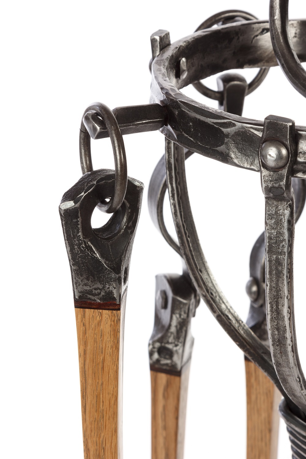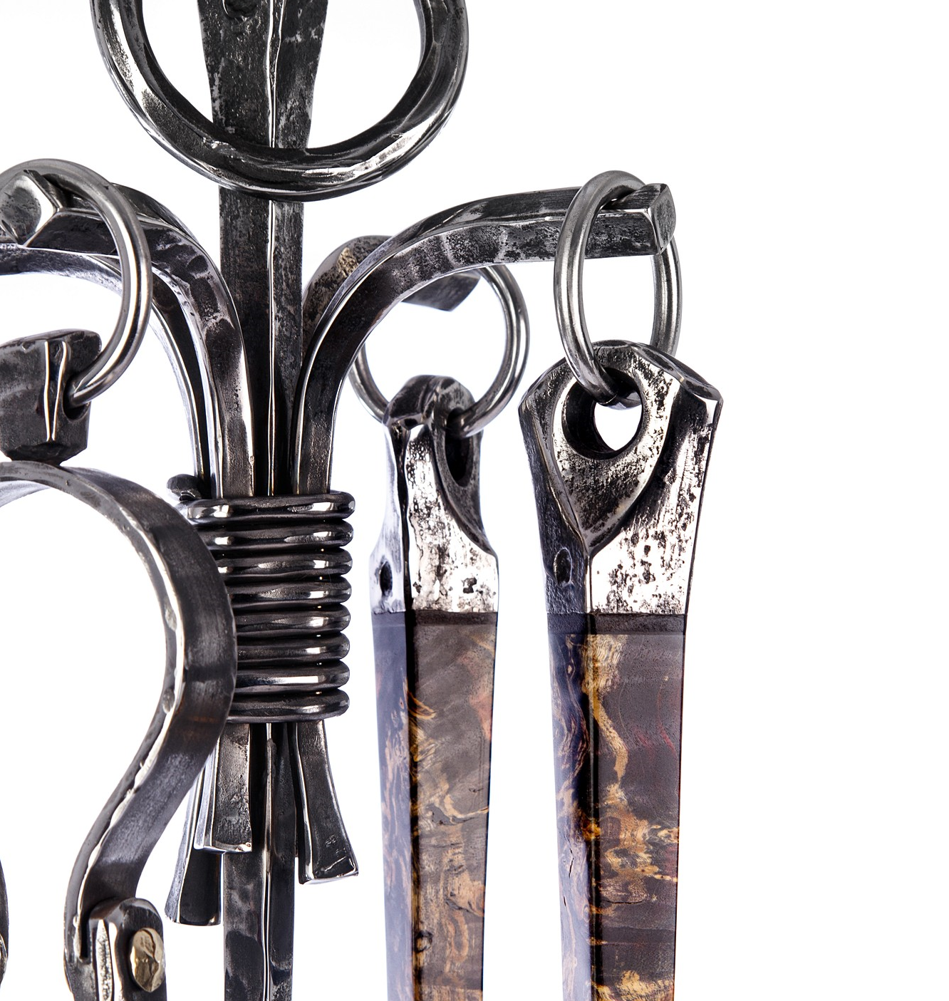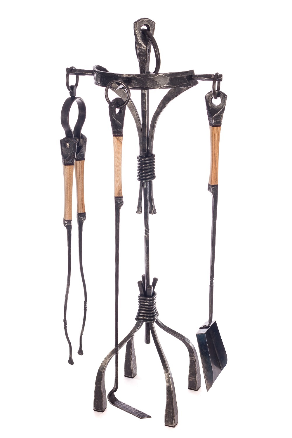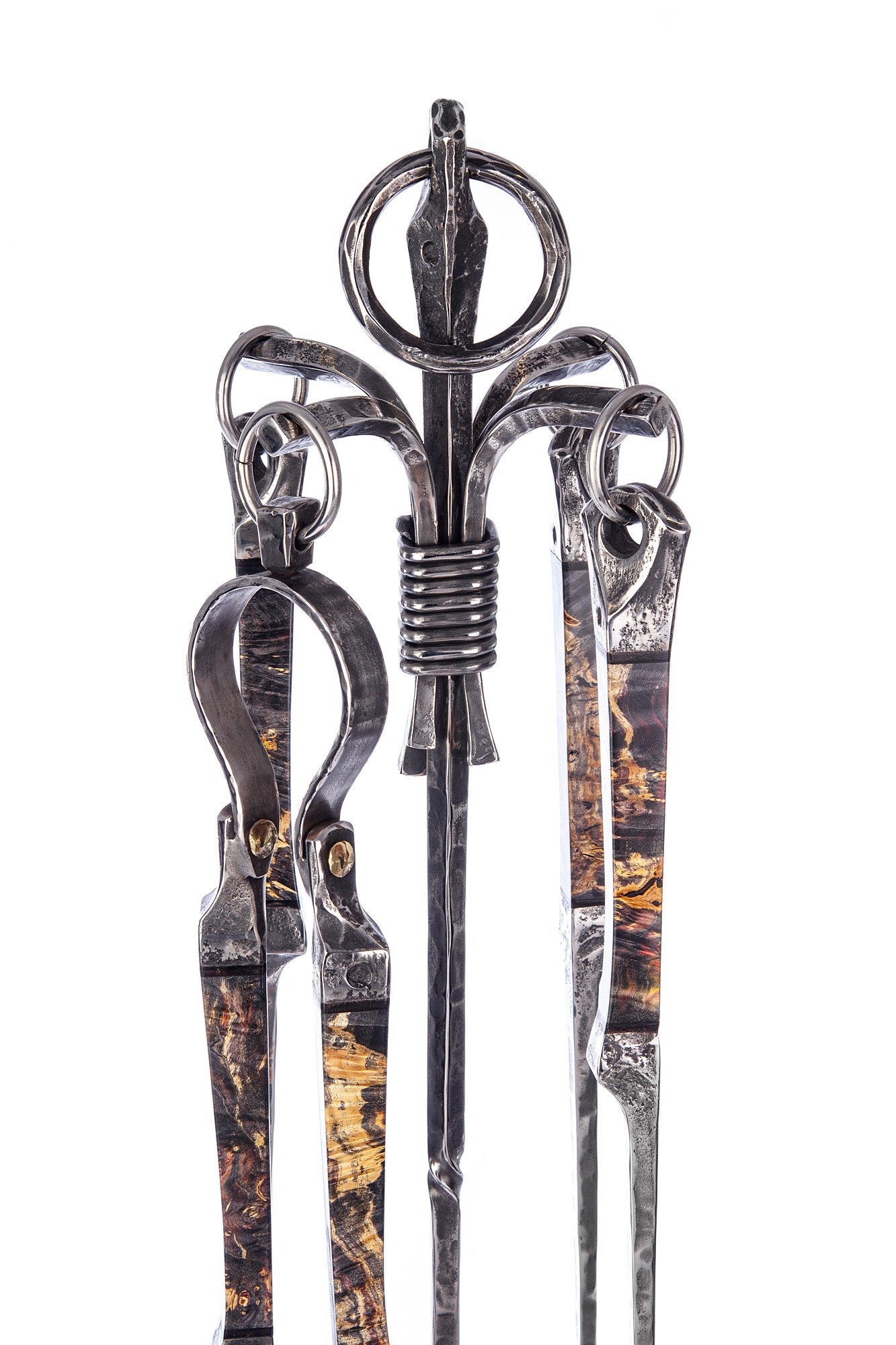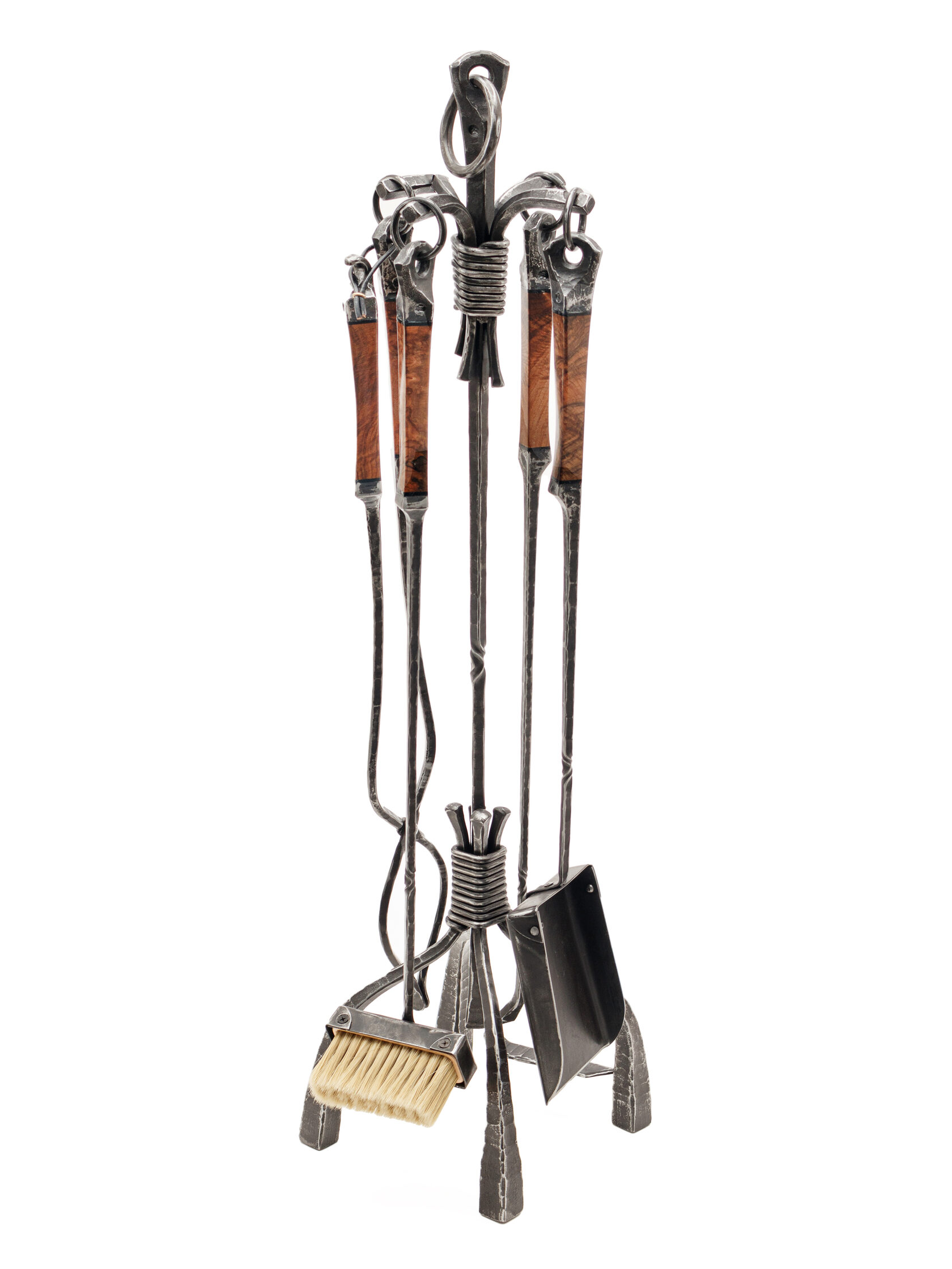 Эксклюзивный кованый каминный набор ручной работы, изготовленный из нержавеющей стали – невероятно эффектный и при этом практичный аксессуар, упрощающий уход за камином. Рукояти инструментов сделаны из стабилизированной древесины.