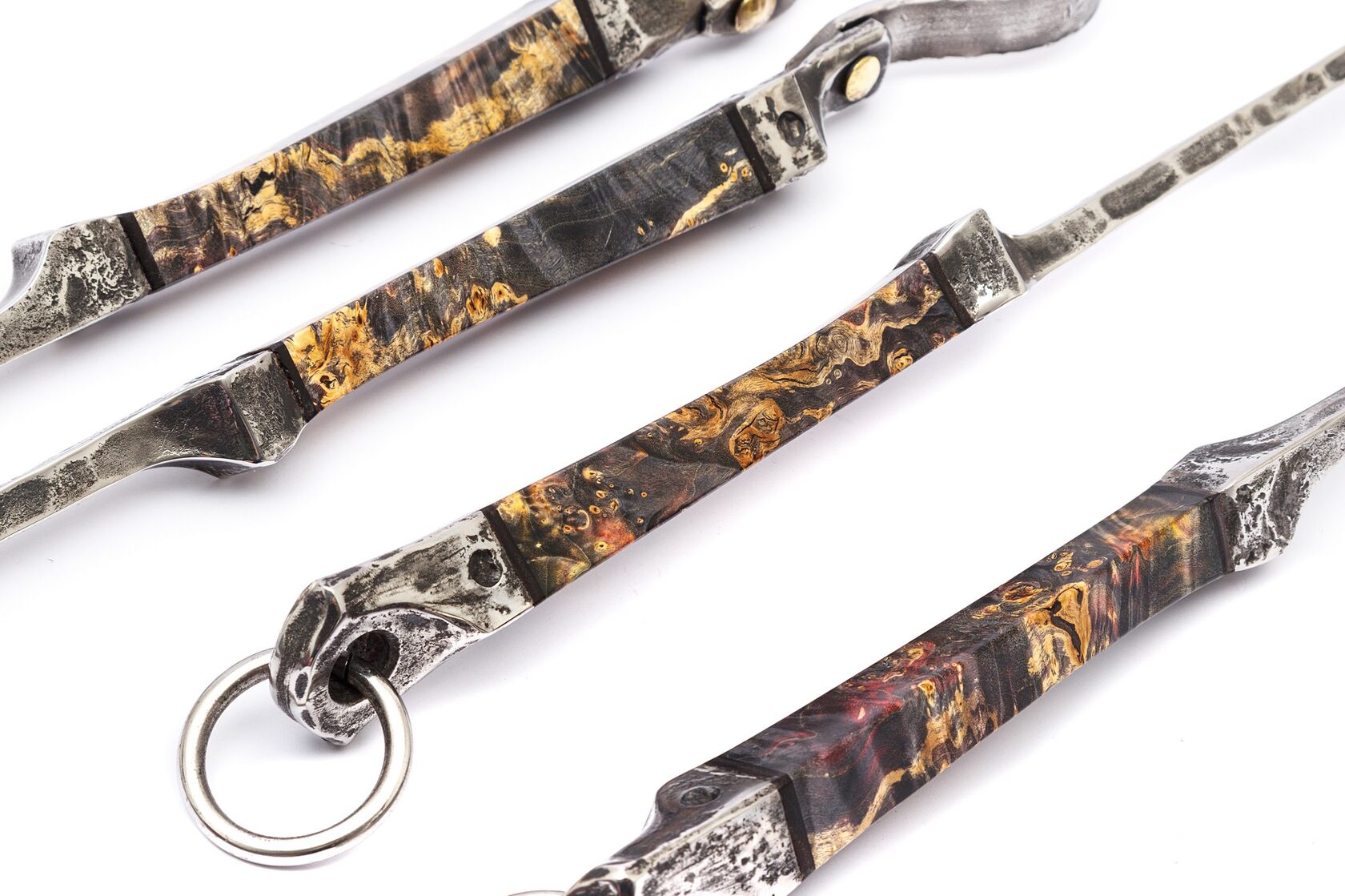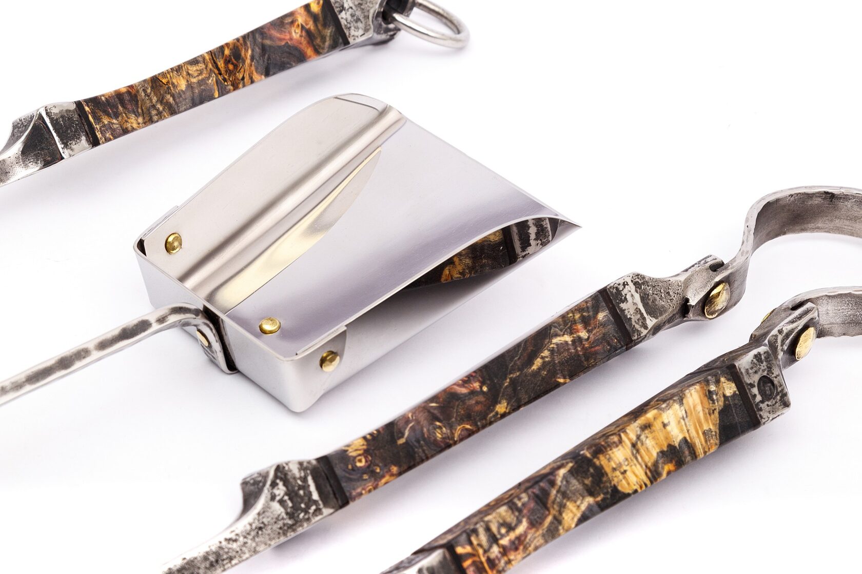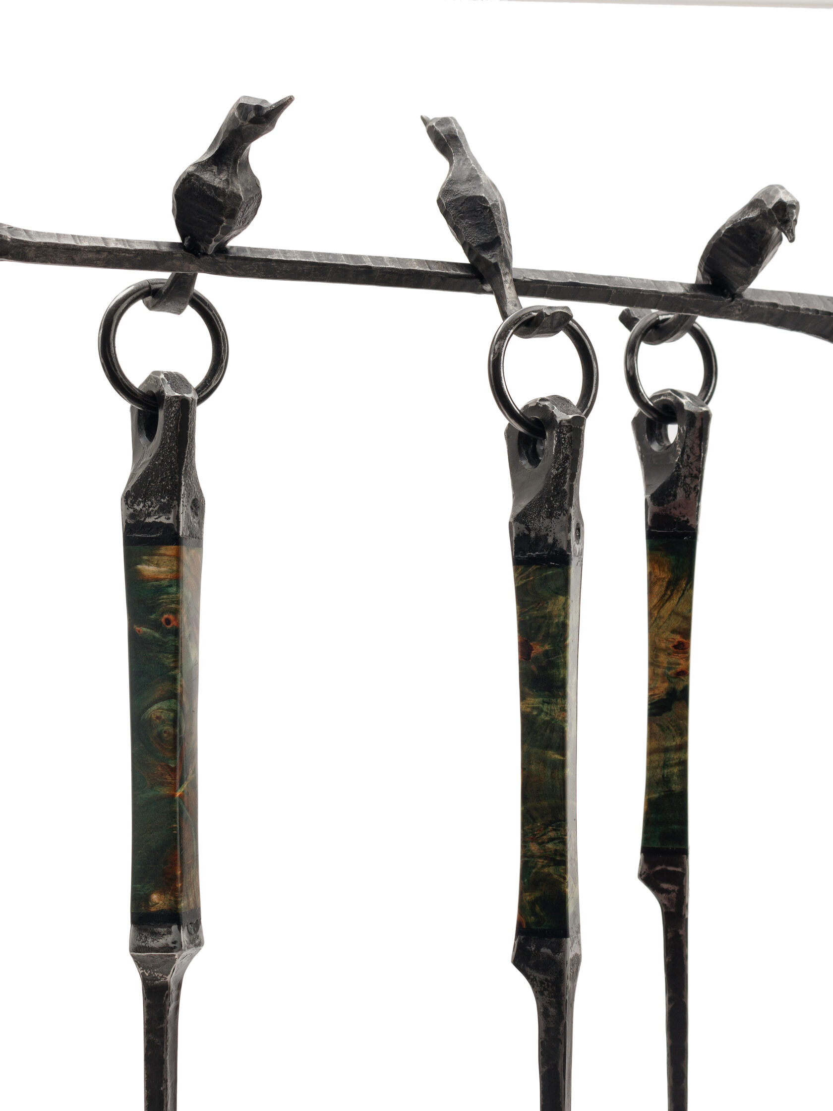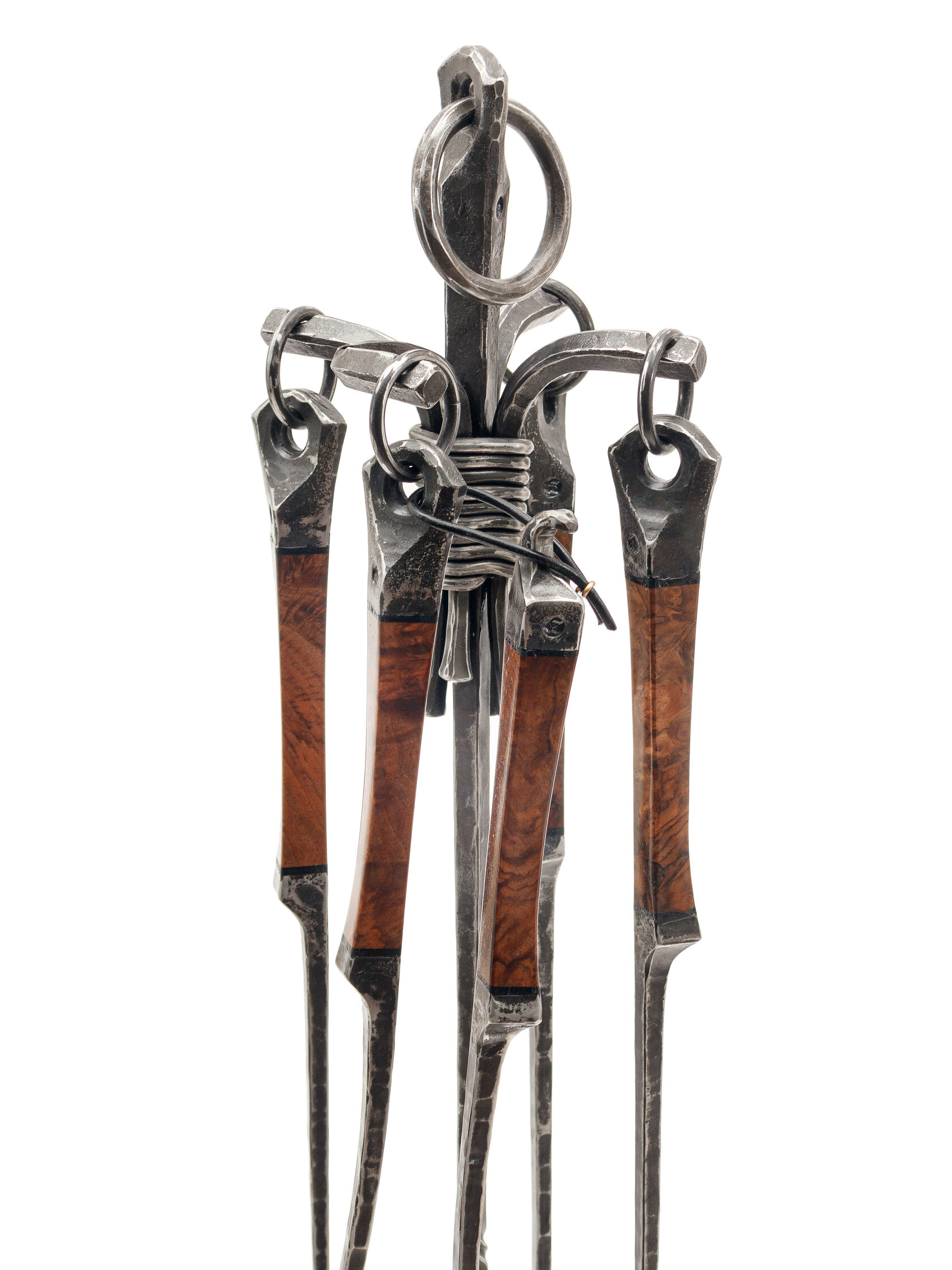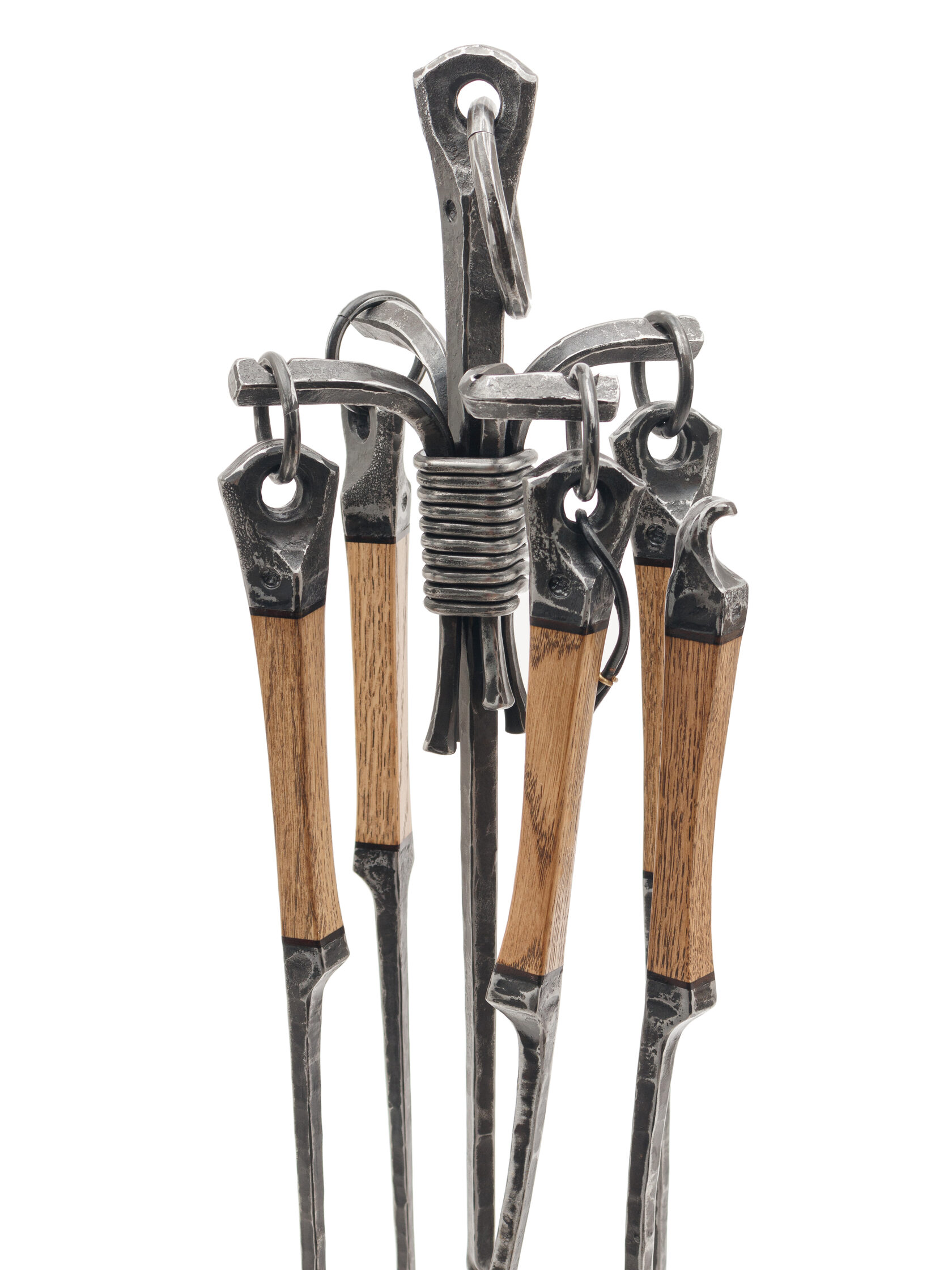 Эксклюзивный кованый каминный набор ручной работы, изготовленный из нержавеющей стали – невероятно эффектный и при этом практичный аксессуар, упрощающий уход за камином. Рукояти инструментов сделаны из стабилизированной древесины.