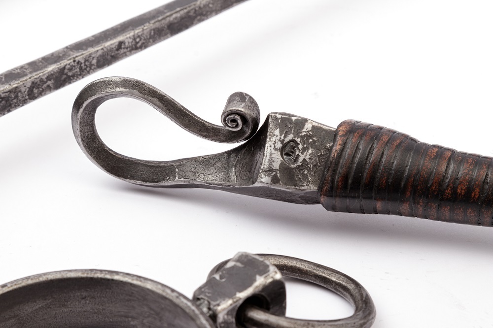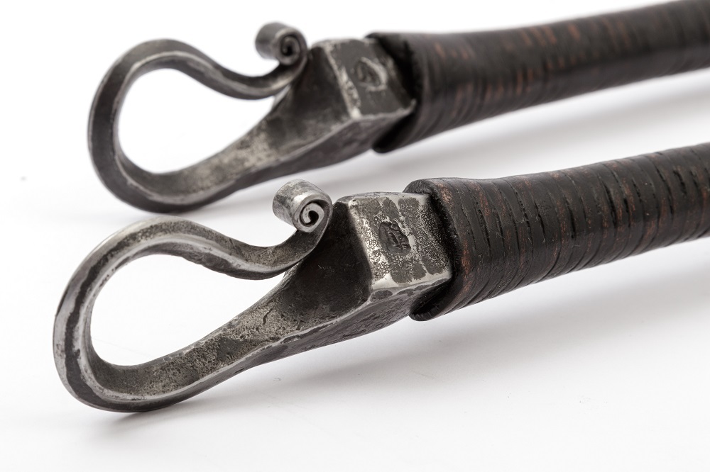Рукояти надежно замотаны кожаным шнуром через сквозные отверстия и проклеены. Натуральная кожа отполирована и обработана специальными средствами. Добротный внешний вид, приятно наощупь. Прослужит долго - износостойкий натуральный материал.